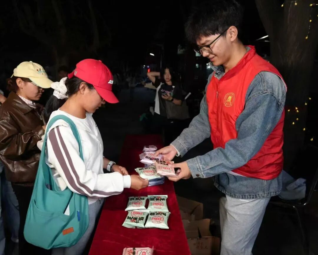 活动现场为同学们准备了多种口味的月饼,香甜软糯,传递出浓浓的团圆情意,让大家在校园中也能感受到如家一般的温暖与关怀。