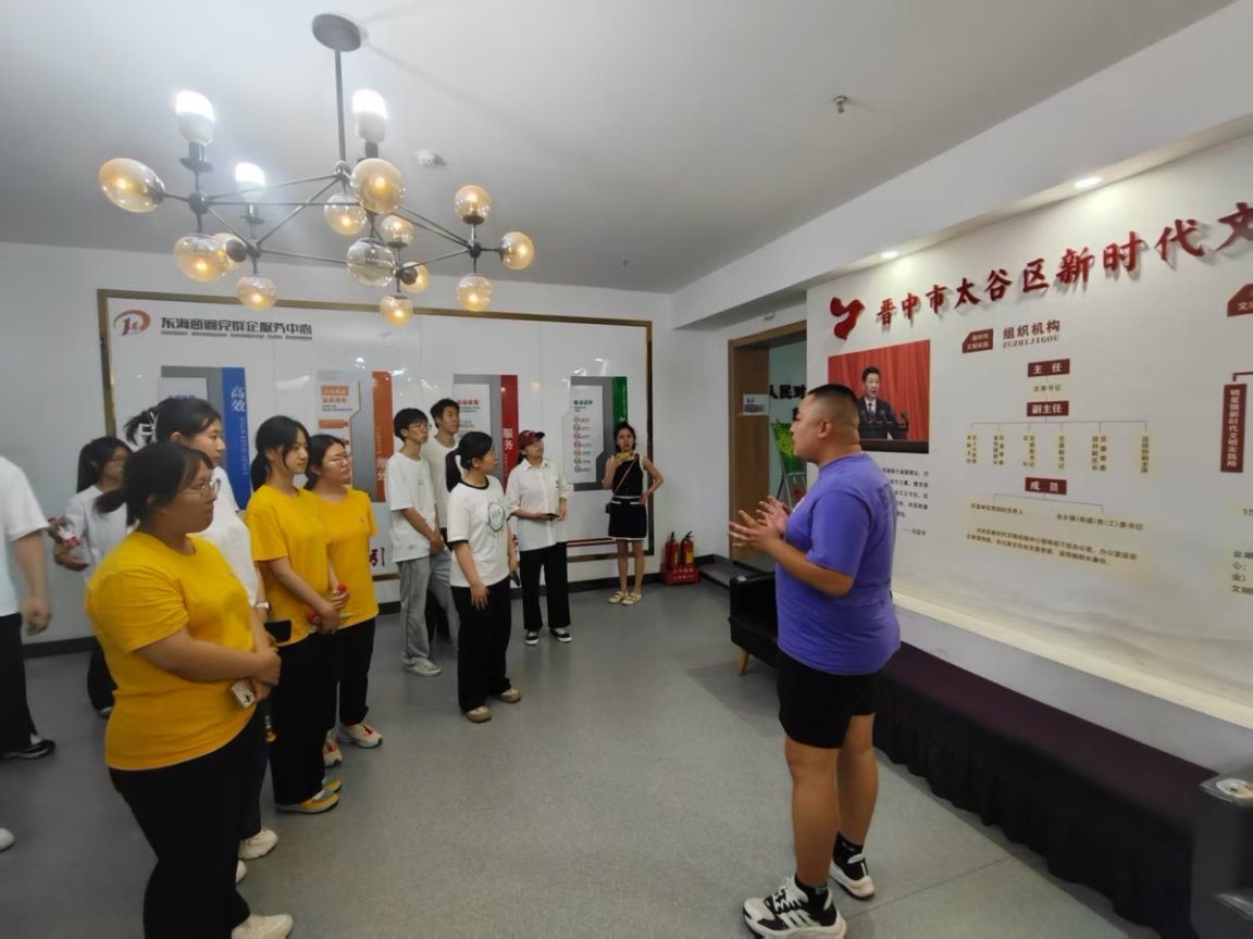 在太谷,食品科学与工程学院的队员们考察了太谷区新时代文明实践中心的功能布局与服务模式,实地探访“全国最美爱心驿站”,深刻体会新时代文明实践中心作为基层服务阵地的温度,感悟“志愿助人更助己”的服务理念。信息科学与工程学院的队员们在在太谷区志愿者协会会长车炳君的带领下,详细了解太谷区新时代文明实践中心各功能区域的作用及运行情况,直观感受到中心在照顾老年人、残障人士、妇女儿童、环卫工人等特殊群体方面做出的工作,充分体现了中心“凝聚群众、引导群众,以文化人、成风化俗”的使命担当。