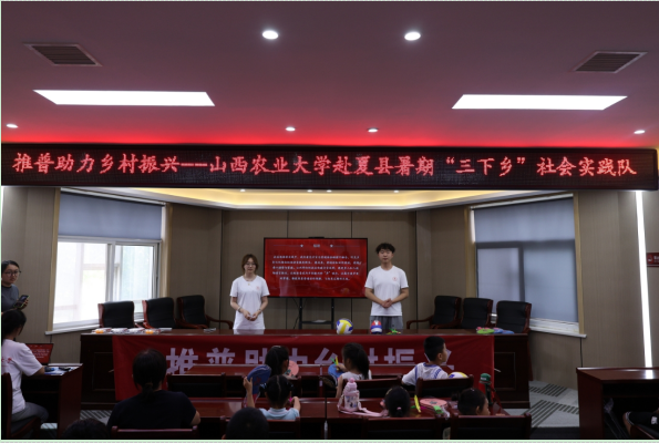 农业工程学院的队员们在小店区新时代文明实践中心也开展了普通话推广工作。他们耐心细致地为工作人员、群众讲解普通话发音要点,逐字逐句指导日常交流用语,让规范语言如清泉润泽心田。队员们还主动帮助工作人员整理散落资料,分门别类归档入册,认真擦拭门窗桌椅,打扫门前积水,使该中心环境焕然一新。