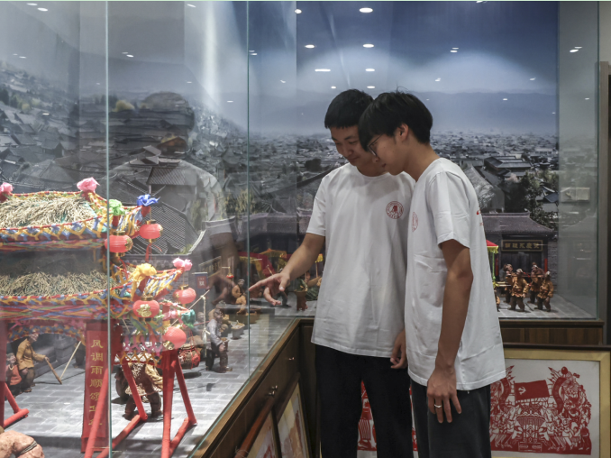 在清徐县非物质文化遗产综合传习中心,动物科学学院的实践队员们通过观摩非遗技艺展演、聆听传承人口述历史、参观非遗成果展,深入了解当地老陈醋传统酿制技艺、徐沟背铁棍等34项国家、省、市、县级非遗项目的传承实践平台、特色志愿服务及文化科普体系,探索非遗活态传承与志愿服务融合模式。