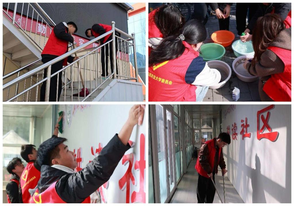 活动中,志愿者们分工明确,手持扫帚、抹布、拖把等清洁工具,对一站式学生社区的办事大厅、咨询台、宣传栏等公共区域进行了全面打扫和整理。大家认真擦拭桌椅门窗,清理地面污渍,仔细将资料文件归档,为前来办事的师生营造了更加整洁、舒适的环境。
