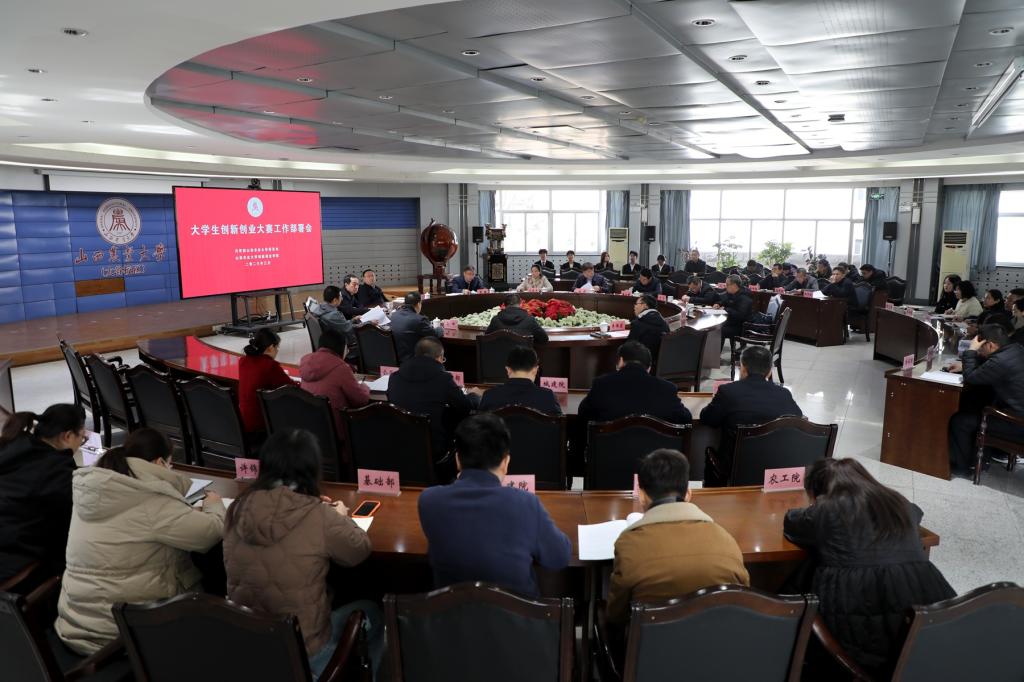 3月18日上午,我校在太谷校区见远堂召开大学生创新创业大赛工作部署会。校党委副书记李卫祥出席会议,校党委常委、副校(院)长李捷主持会议。