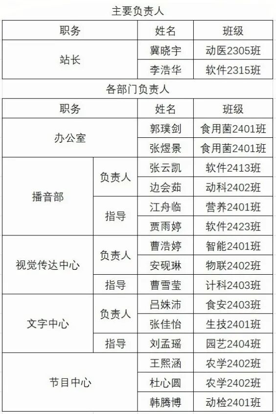 拟定以下同学担任山西农业大学校园生活广播站第四十一届编委会成员,现将有关情况公示如下: